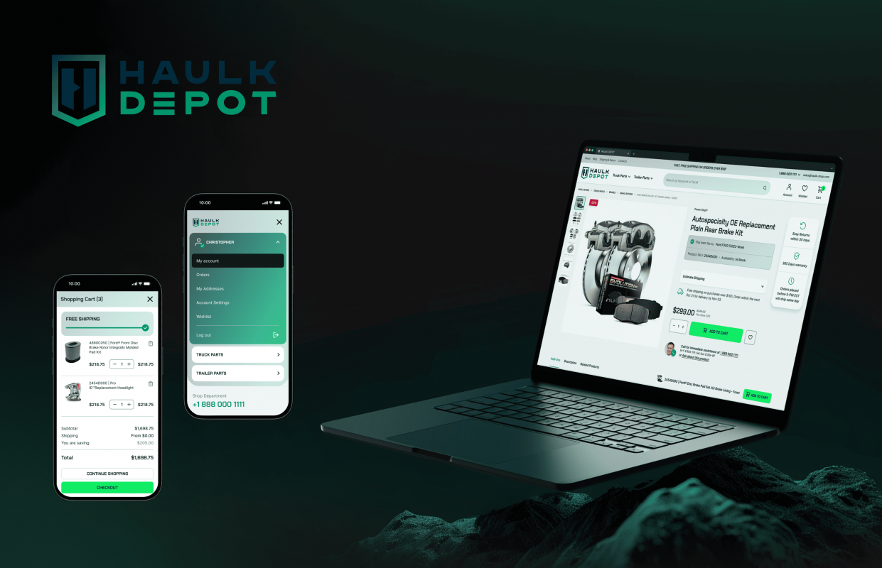 Our team has been successfully collaborating with HAULK, one of the leading trucking operators in North America, for a long time. Together, we have implemented a unique digital logistics business management ecosystem that consolidates fleet management, technical support, and partner engagement processes. Now, the client has decided to use the experience and established infrastructure to launch a new line of business. Actually, they turned to us to create a full-fledged online store of auto parts and equipment.