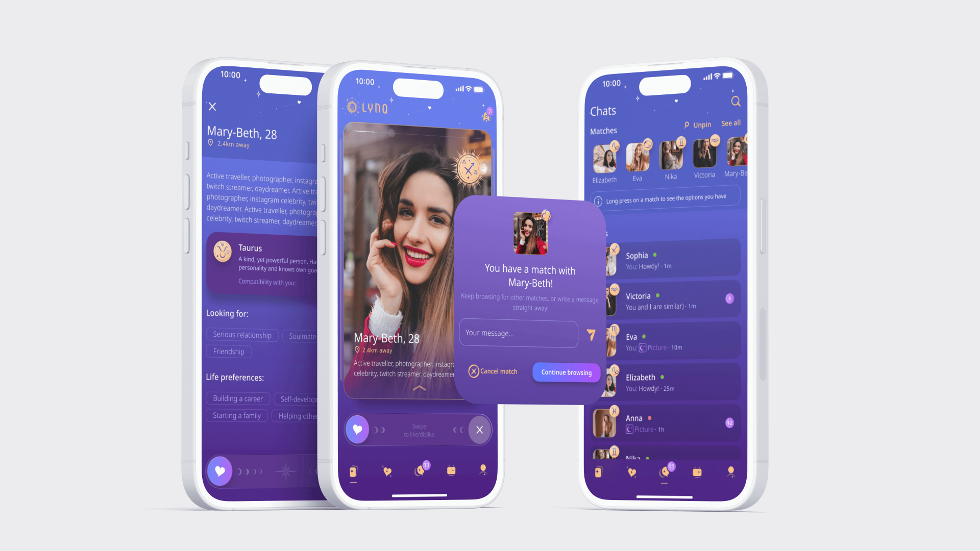 The client approached us with a startup idea: to create a dating mobile application with vivid visuals to correct the imbalance in the number of male and female profiles typical to most dating platforms. The client has chosen astrology as a central theme: all game elements and app content had to be created on its basis.