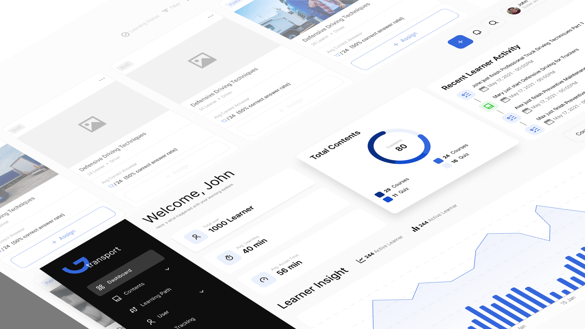 As a result of our productive collaboration with the client, we have created a comprehensive employee training system that provides drivers with the educational content to help them stay safe and compliant on and off the road. This end-to-end learning platform consists of the following components: